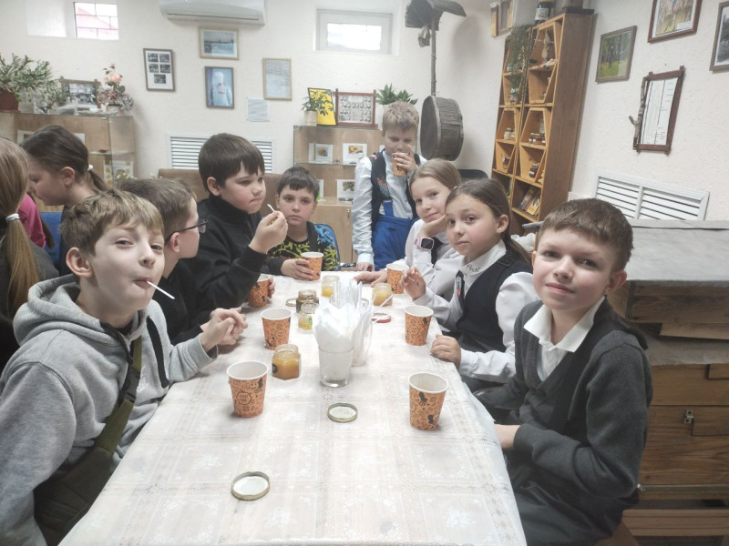 Вчерашний день был заполнен детскими голосами. К нам в музей мёда пришли третьеклассники из школы N 34. Экскурсия, что мы для них устроили, была, в сущности, простой: жизнь пчёл, их нехитрые, но удивительные продукты, сроки созревания мёда.